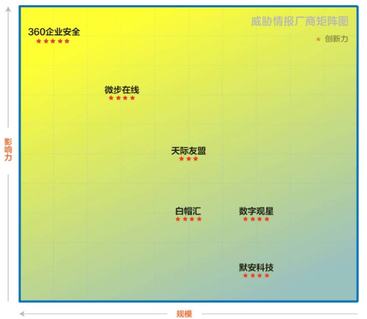 4. 规模较小、专业性较强的威胁情报厂商在短期内还需大量的资本投入,从人员能力到存储计算资源,成本预算都比较高;另一方面拥有完善销售渠道和丰富产品线的大型厂商也会加大投入,组建几十人的专业团队并投入大量资源来支撑以威胁情报做为基础的新产品,以巩固已有的产品市场份额,提高技术门槛。