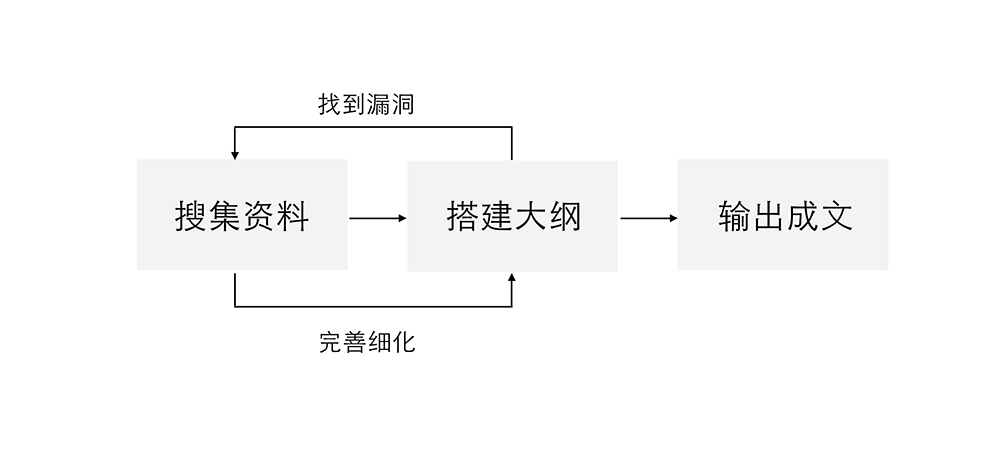 其中前两步往往是同时进行,不分先后:了解了基本信息就可以开始搭建结构,在梳理论点和证据时如果出现了逻辑上的断层,就得找更多文献填补空缺。而只要这两步做得足够细致,写作时就可以顺着大纲一路写下去,行云流水毫无阻滞。
