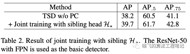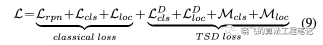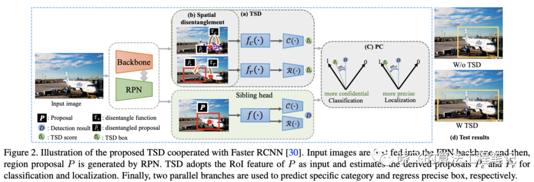 如图2所示,在训练时,TSD和原来的结构共存,定义主干输出的预测框为 ,TSD输出最终的定位结果 和最终的分类结果 ,原sibling head输出的结果为 ,GT为 ,类别为