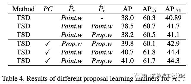 为了解决这个潜在的问题,TSD直接在空间上对分类和定位进行分解,如公式2,从原预测框 中预测出分类框 以及定位框 , 为pointwise的形变, 为proposal-wise的变化,具体如图2(b)所示。然后再通过不同的特征提取和head进行分类和定位的预测, , 。由于分解了分类和定位的预测区域,TSD能够学习task-aware的特征表达。
