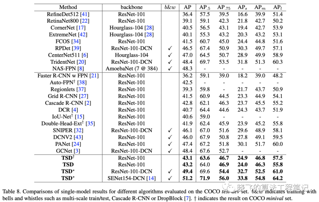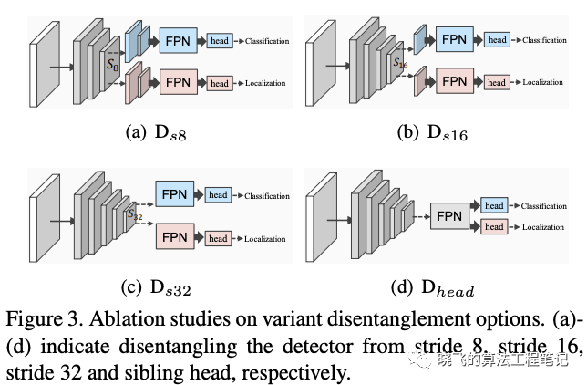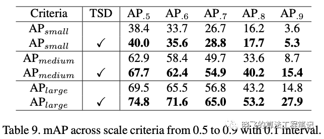 这里对比了TSD与不同的分解策略,比如 即从stride为8的特征图开始分解。