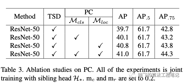对于定位分支,PC如公式8, 为原方式的最终预测结果, 为TSD转换后的最终预测结果,仅对正样本进行计算,即约束TSD的预测结果的IoU需要比sibling head至少高