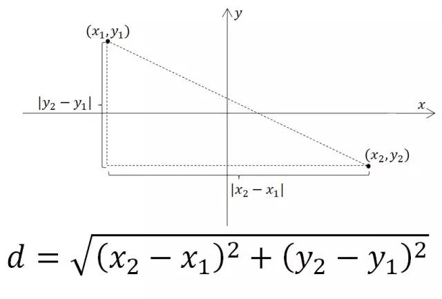 前面讲到的p=2的情形(欧几里德范数),实际上就对应了我们日常生活中所说的“距离”,即在笛卡尔坐标系下两点间的距离公式。当然平面几何中不需要n维向量,只需要二维向量(x,y)就足够了。