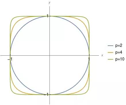 显然随着p的增大,“单位圆”也就变得越来越胖,而且经历了“由方变圆又变方”的奇妙旅程😅