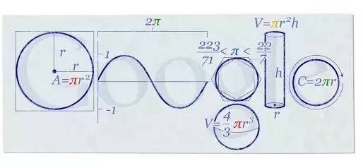 某不存在的网站上庆祝π日的Doodle,2010年3月14日。