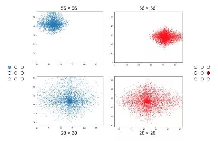 在一个3x3的grid point中,真实标签只会出现在监督热图的左上方区域,但这样是不对的,对于一个物体来说,它的所有的grid points共享一个相同的特征表达区域。为了解决这个特征表达区域的问题,首先,将grid branch的输入尺度从原来的56x56降低为28x28,对于每个grid point,新的输出代表了原来大概四分之一的区域。经过这样处理后,每个grid point的表达可以近似的视为一个归一化的过程。