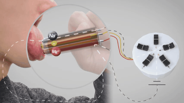 该产品通过在五种凝胶中使用离子电泳来模拟咸、酸、苦、甜和鲜五种味觉,背面的控制器可以调整味道,表面则用铜箔包裹,需要时也可以用海苔包裹以增加香味。(PS:好像听起来不太智能的亚子)