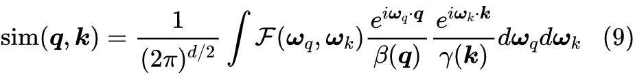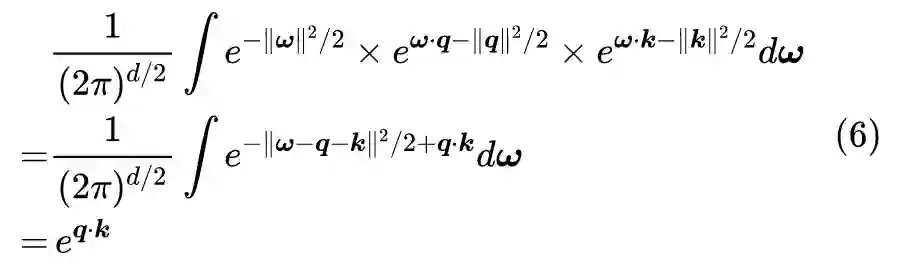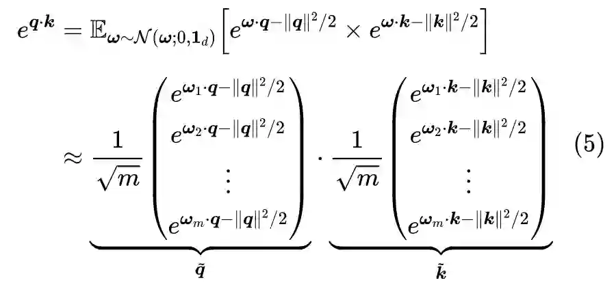 所以,借助这个近似,我们就可以将两个 d 维向量的内积的指数,转化为了两个 m 维向量的内积了,从而理论上来说,我们就可以将原来 head_size 为 d 的标准 Attention,转化为 head_size 为 m 的线性 Attention 了,这便是整篇论文的核心思路。