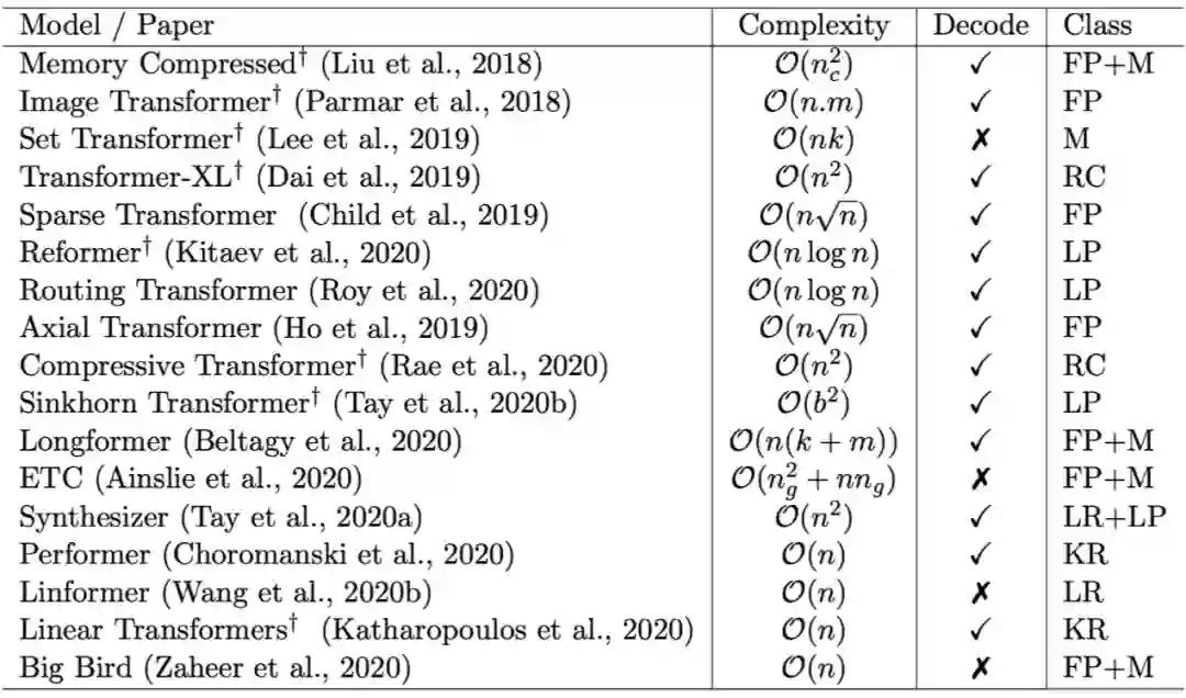 ▲ 各类改进版Transformer比较。其中decode那一栏指的是能否mask掉未来信息,用于做语言模型