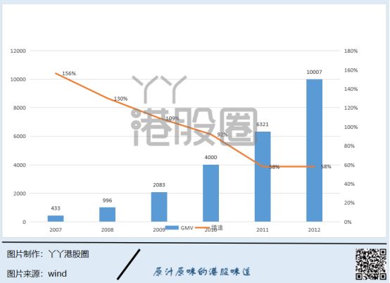 2007至2012年,阿里2C业务(含淘宝、天猫等)平台的交易量增长迅猛。