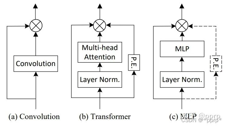 注:感觉这三种模块的设计注入了很多经验型设计,比如卷积并没有用普通卷积,用深度可分离卷积其实类似MLP中的操作,此外为MLP引入CPE的操作也非常具有技巧性。