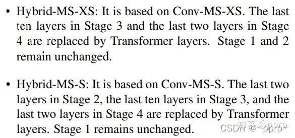 在multi-stage的卷积网络基础上将某些Mixing Block替换为Transformer的Block, 并且处于对他们建模能力的考量,选择在浅层网络使用CNN,深层网络使用Transformer,得到两种模型空间: