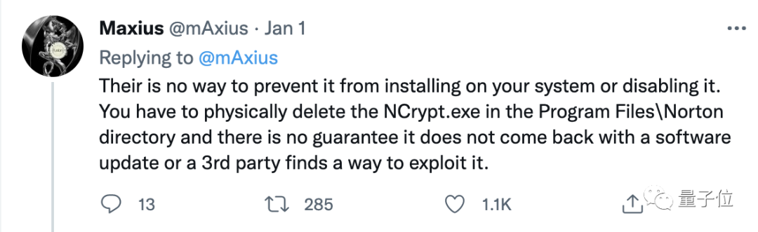 针对大家说的卸不掉的问题,诺顿向The Verge表示,不用担心:先暂时关闭诺顿的篡改保护功能(就点两下的事儿),然后删除exe文件就行。