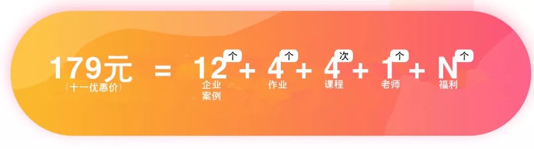 A:2019年就这么一期,再加上双十一优惠价179元,优惠错过就再也没有了。更何况根据老师排期,不会频繁开设,抓紧令自己、令公司增长的机会,早点开始吧~