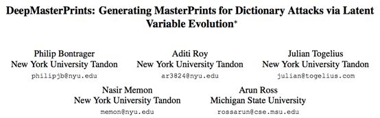 论文:DeepMasterPrints: Generating MasterPrints for Dictionary Attacks via Latent Variable Evolution