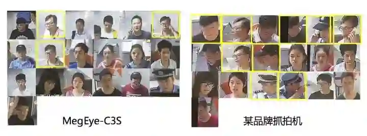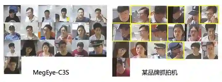 旷视 MegEye-C3S 与某高端抓拍机正脸率对比