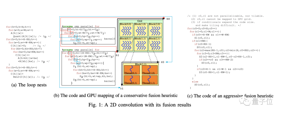 首先,这项工作自动化地实现了一种循环分块和合并的新组合。这种组合在已有的基于Polyhedral的自动编译过程中没有被考虑到,因为现有的Polyhedral编译流程限定了这两种循环变换的组合顺序。