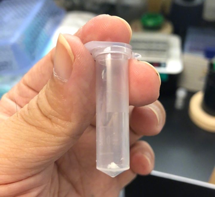 和标准天然淀粉对比,人工合成的淀粉的结构基本一致。无论是吸收峰,还是核磁共振信号,都佐证了这种合成和天然淀粉非常接近。下图是合成的淀粉实物图。