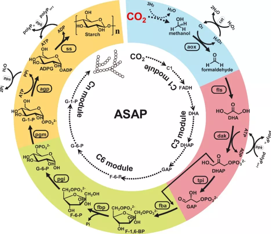 团队对ASAP (artifical starch anabolic pathway,人工淀粉合成路线)进行了多次迭代:
