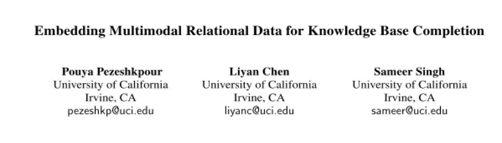 当前的知识库补全的方法主要是将实体和关系嵌入到一个低维的向量空间,但是却只利用了知识库中的三元组结构 (<s,r,o>) 数据,而忽略了知识库中大量存在的文本,图片和数值信息。本文将三元组以及多模态数据一起嵌入到向量空间,不仅能够使链接预测更加准确,而且还能产生知识库中实体缺失的多模态数据。