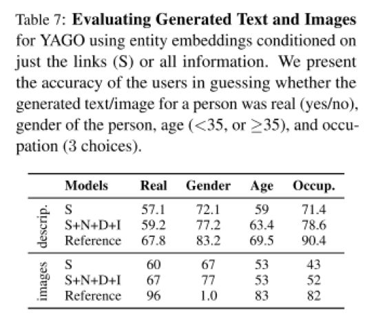 2 生成多模态数据:可以看到,引入了多模态数据之后,产生出来的文本和图片的质量比起仅仅依靠知识库原本就存在的三元组信息产生的文本和图片的质量要高。