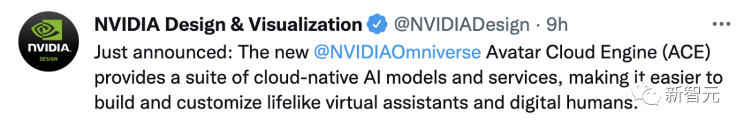 8月9日,英伟达正式发布了一套基于云服务的AI模型——NVIDIA Omniverse Avatar Cloud Engine(ACE)。