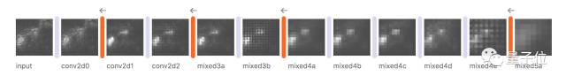 上面是ImageNet训练的GoogLeNet的特征可视化图,我们可以从中看出它的每一层是如何对图片进行抽象的。