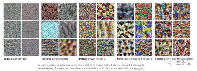 在2015年谷歌推出的DeepDream基础上,经过AI研究界后来的共同努力,现在,计算机视觉模型中每一层所检测的东西都可以可视化出来。经过在一层层神经网络中的传递,会逐渐对图片进行抽象:先探测边缘,然后用这些边缘来检测纹理,再用纹理检测模式,用模式检测物体的部分……