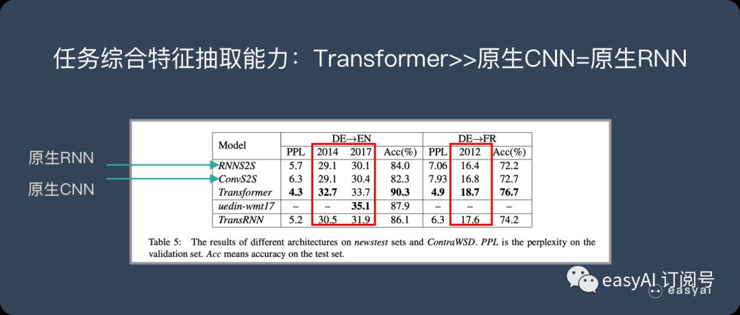 Transformer综合能力要明显强于RNN和CNN(你要知道,技术发展到现在阶段,BLEU绝对值提升1个点是很难的事情),而RNN和CNN看上去表现基本相当,貌似CNN表现略好一些。