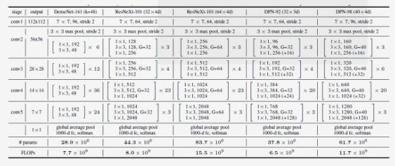 与ResNeXt相比,DPN故意设计了更小的模型尺寸和更少的FLOP。