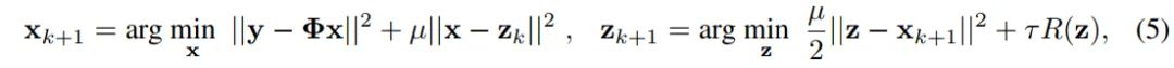 我们对公式(4)中的 x 和 z 进行解耦,从而得到两个迭代的子问题如下: