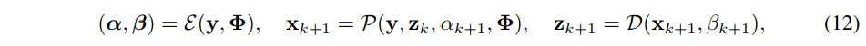 我们可以用一个嵌入的神经网络来隐式地求解公式(11)。至此,我们便完成了 x 项与 z 项的迭代求解过程。