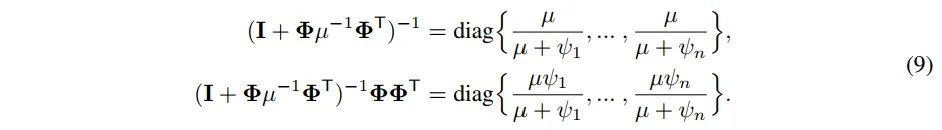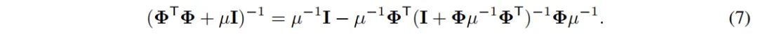 其中 I 是恒等矩阵,上述闭式解涉及到矩阵求逆,对计算机不友好。为简化矩阵求逆运算,我们做了以下推导: