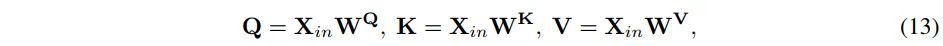 HS-MSA 如图3 (d) 所示,将输入的 token 线性映射为: