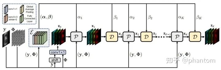 我们首先推导出一个 CASSI 退化模式和病态度可感知的深度展开框架,Degradation-Aware Unfolding Framework (DAUF),如图 2 所示。它以最大后验概率为理论基础来进行推导。结合公式(1),我们可以得到 CASSI 的最大后验概率能量优化函数为: