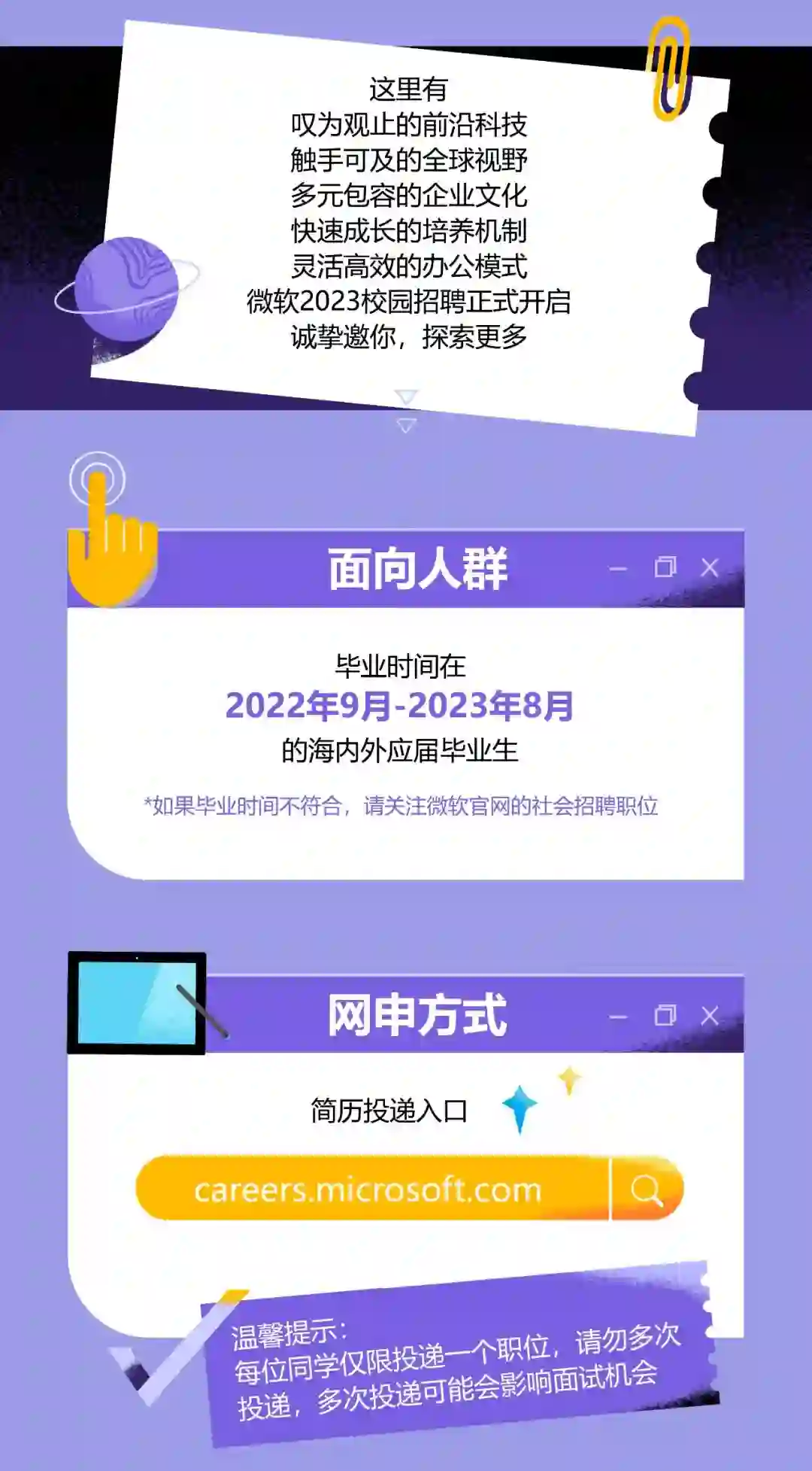 校招微软2023校园招聘第一波提醒来袭!