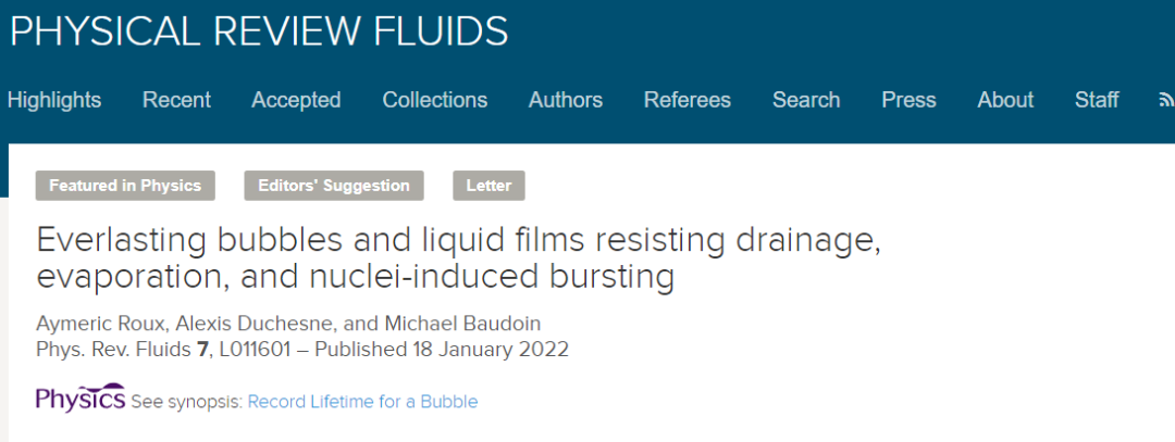 在最近的《流体 物理评论》(Physical Review Fluids)杂志上,我们就发现了这样一项研究:法国的物理学家成功地用塑料颗粒、甘油和水制造出了能够保持很久的泡泡,最久的多达 465 天。