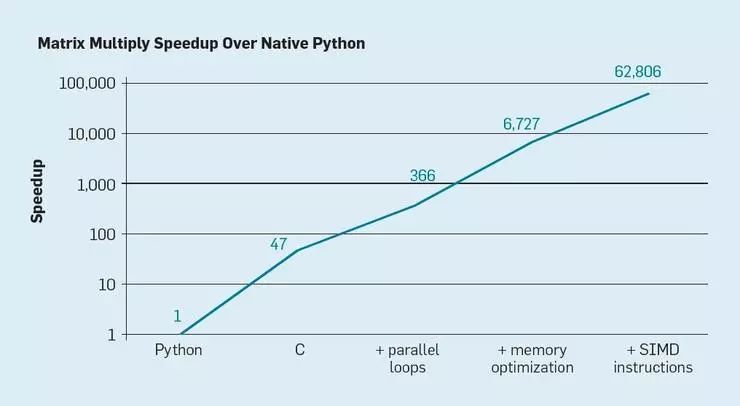 一个运行在英特尔多核处理器上的、经过高度优化过的程序可以比最初的 Python 版本快超过 6 万倍。