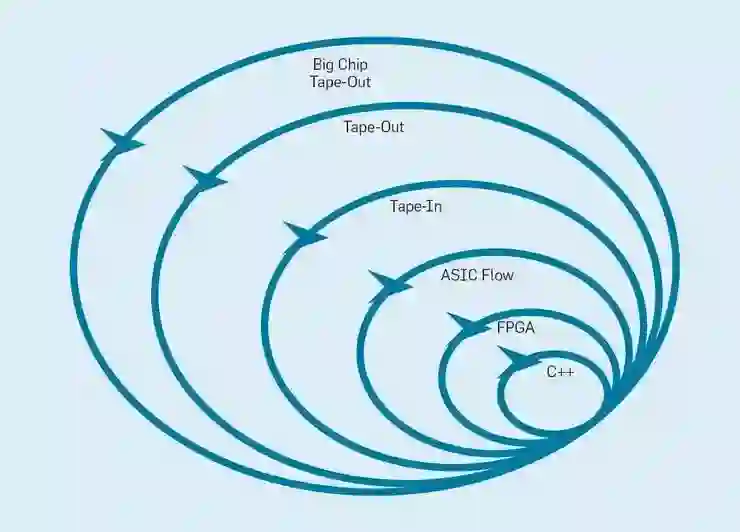 如果说要把软件开发中的每四周一次迭代的快速前进方式照搬到硬件开发,一听之下会觉得难以置信,毕竟从硬件设计定版到得到芯片成品就有好几个月的时间。而下面的图 9 就展示了敏捷开发过程中可以在适当的抽象级别上更改原型。最中央的抽象级别是软件模拟器,也是在迭代中做改动最简单、最快的部分。下一层是可以比细致的软件模拟器运行快数百倍的 FPGA。在 FPGA 上可以运行操作系统,也可以进行全功能的性能评测,比如 SPEC 中的测试项目;这让原型的评价更加准确。亚马逊云服务就提供了 FPGA,架构设计师们无需购买 FPGA 硬件并建立实验室就可以使用 FPGA 做自己的验证。为了获得芯片面积和功耗的具体数值,下一层的 ECAD 工具可以生成芯片的布局图。在工具运行完毕之后还需要人工进行一些步骤,对结果进行微调,确保新的处理器已经准备好投入生产了。处理器设计师们把这下一层称作「tape in」。前面的这四个级别都可以使用每四周一次的迭代速度。
