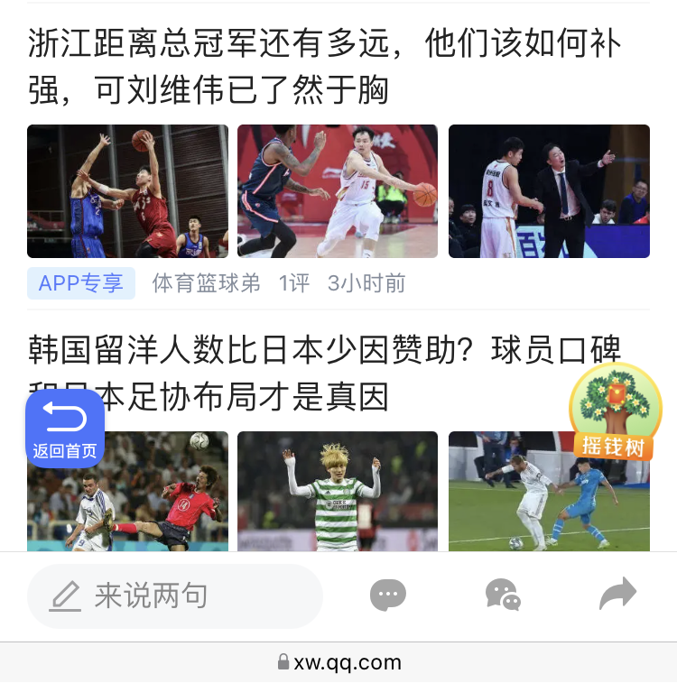 在浏览器打开腾讯网的某新闻链接,下拉底部信息流中的大多数内容均为“APP专享”。