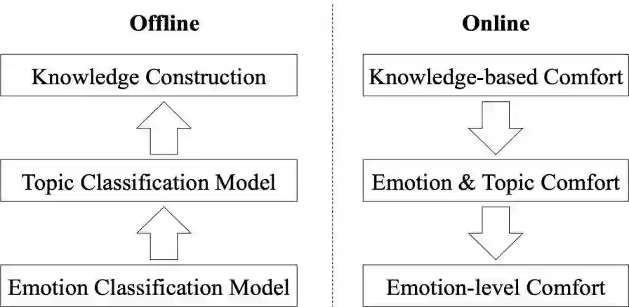 在线端,其实是一个相反的过程,首先识别用户所说的是不是和之前总结的知识点比较接近,如果有就拿出来进行回答,如果没有就看是否可以归结到某种主题这样的情况上,如果再没有的话,就监测它是不是仅仅是属于一种情绪表达,然后给出更宽泛的情绪安抚。