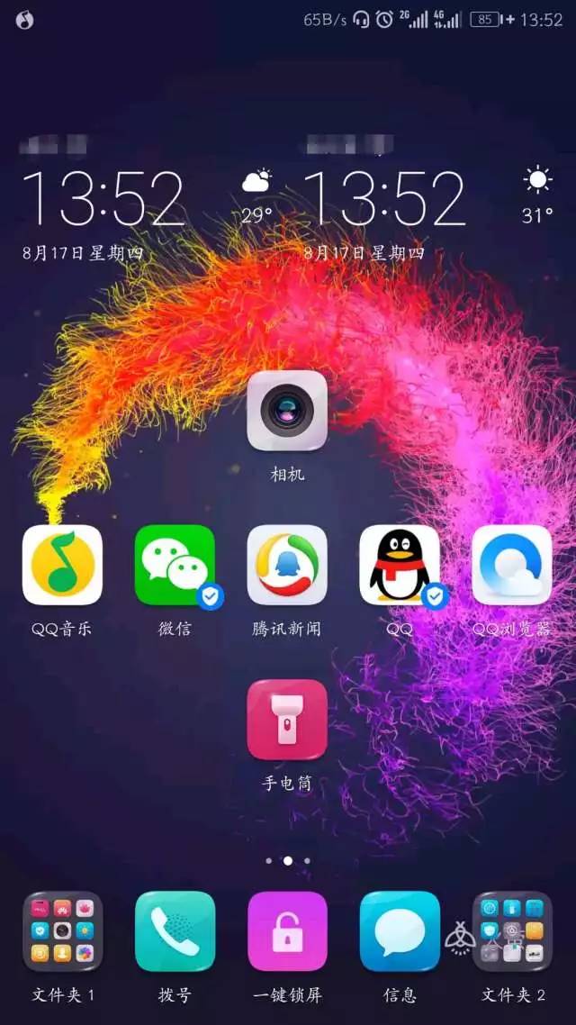 两个文件夹,拨号,锁屏,短信,说多不多说少不少,总之不乱就行。