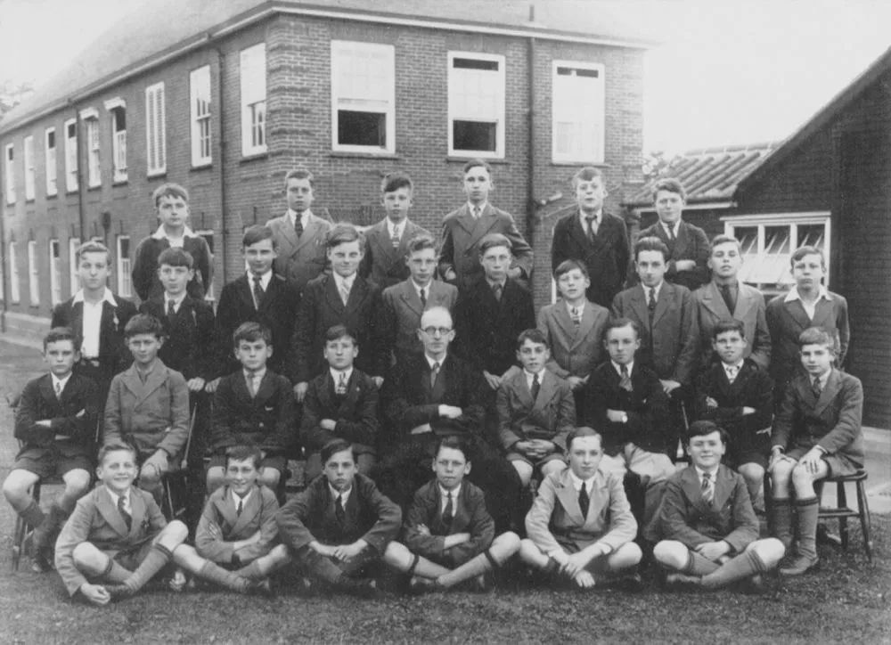 图1.8 格雷夫森德郡立男子学校的二年级,我在最后一排的左起第一位