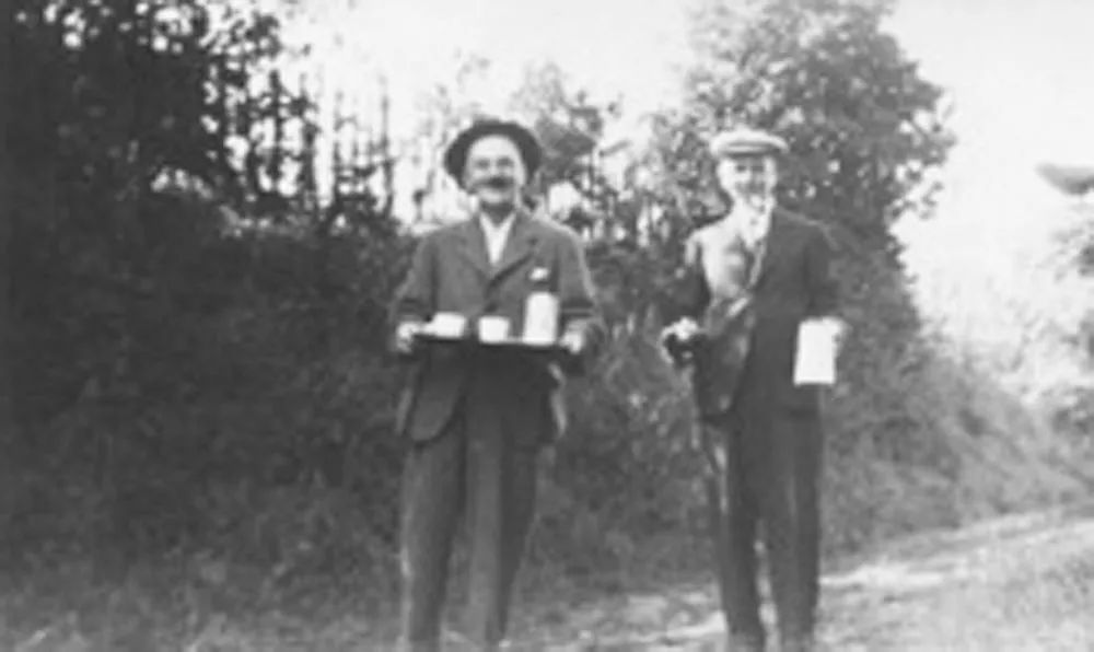 图1.7 杰克叔叔和我的父亲从当地住家端来茶水,给在欢乐谷野餐的其他人