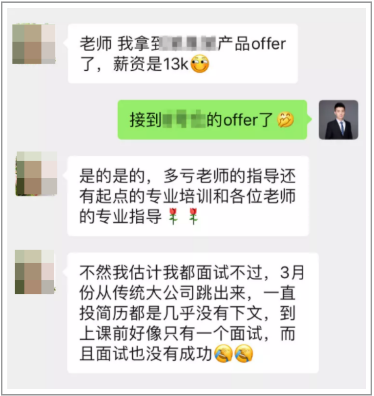 目前这门课,已经帮助了2000+位0基础/弱基础的学员拿下理想Offer,并且收获了来自学员、HR、合作企业源源不断的好评。很开心我也成为了其中之一。