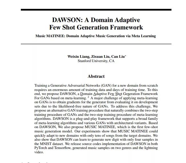 DAWSON: A Domain Adaptive Few Shot Generation Framewor
