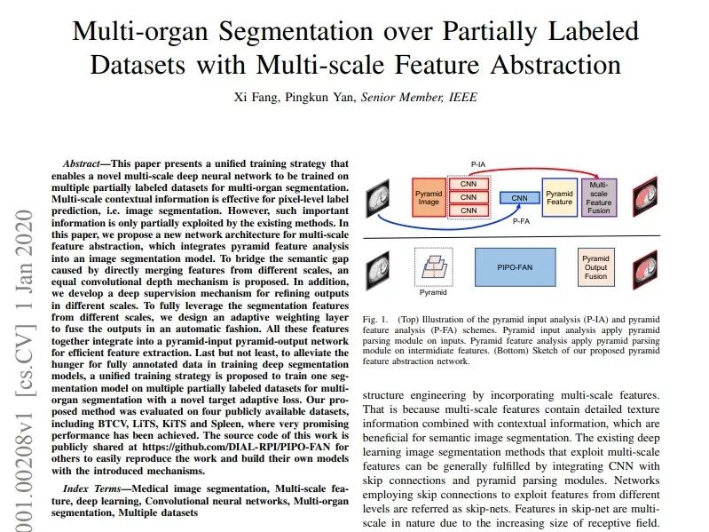 Multi-organ Segmentation over Partially Labeled Datasets with Multi-scale Feature Abstractio