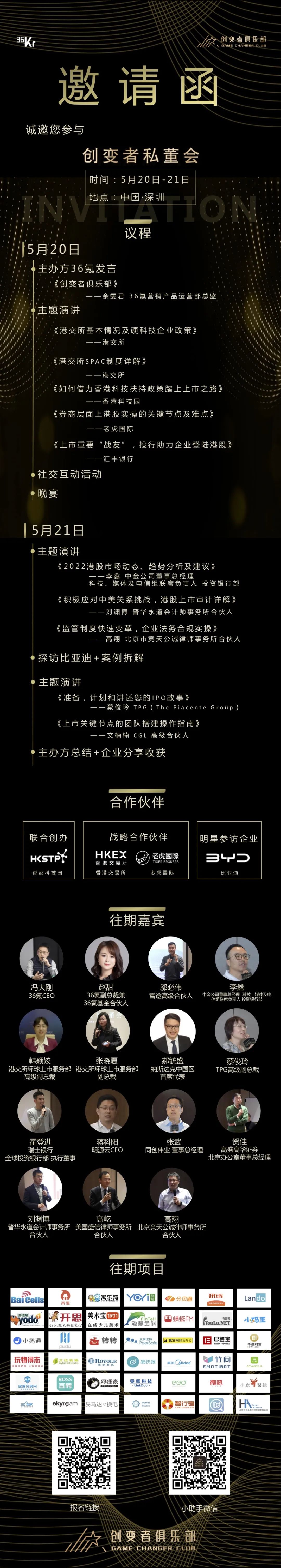 自2020年11月以来,36氪已成功举办四届创变者私董会,主要面向Pre-IPO企业,全面解读资本市场,助力企业管理层了解上市流程、建立关键朋友圈、深入体验实操案例,同时受邀参与其中的还有香港交易所、纽约交易所、纳斯达克交易所、高盛高华证券、同创伟业、中金公司、美国盛信律师事务所、北京市竞天公诚律师事务所、普华永道会计师事务所、TPG、达信保险和36氪的多位资深嘉宾。