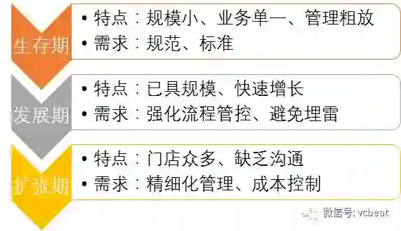 第三个层次是大企业,连锁数量多,内部缺乏沟通,需要的工具就是内部的精细化管理和流程设置,保证企业能够高效地执行和运转。