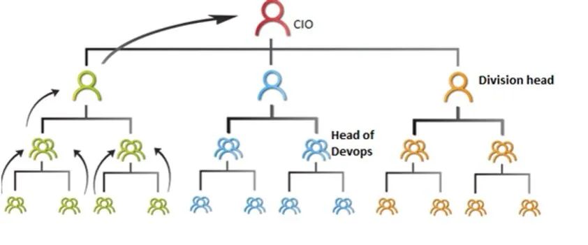 DevOps 由部门主管负责,他 / 她需要向组织的其他成员推销或证明这项服务。DevOps 部门主管与其他部门主管之间存在着“推销方 - 接受方”的动态关系。在整个组织中推广 DevOps 是 DevOps 部门主管一个人的直接责任,并非所有部门主管有同样的 KPI 要求。
